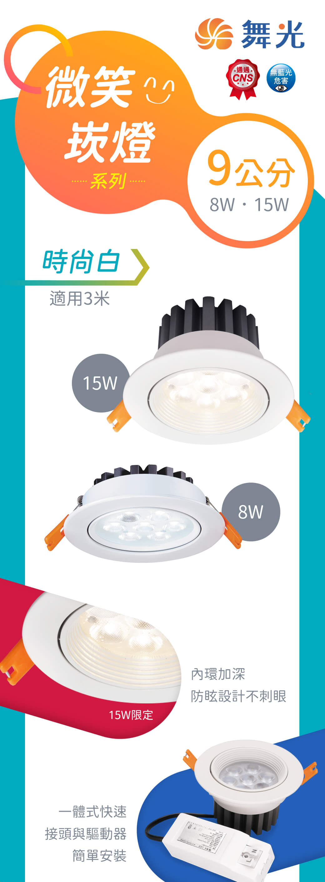 ICON_認證-CNS ICON_認證-無藍光危害 ICON_規格-白光 ICON-特色_燈體可調角 ICON-特色_窄角投射型 ICON-特色_快速安裝 ICON-特色_高演色 ICON-特色_演色性R9-0 ICON-特色_全電壓 ICON-特色_適用3米